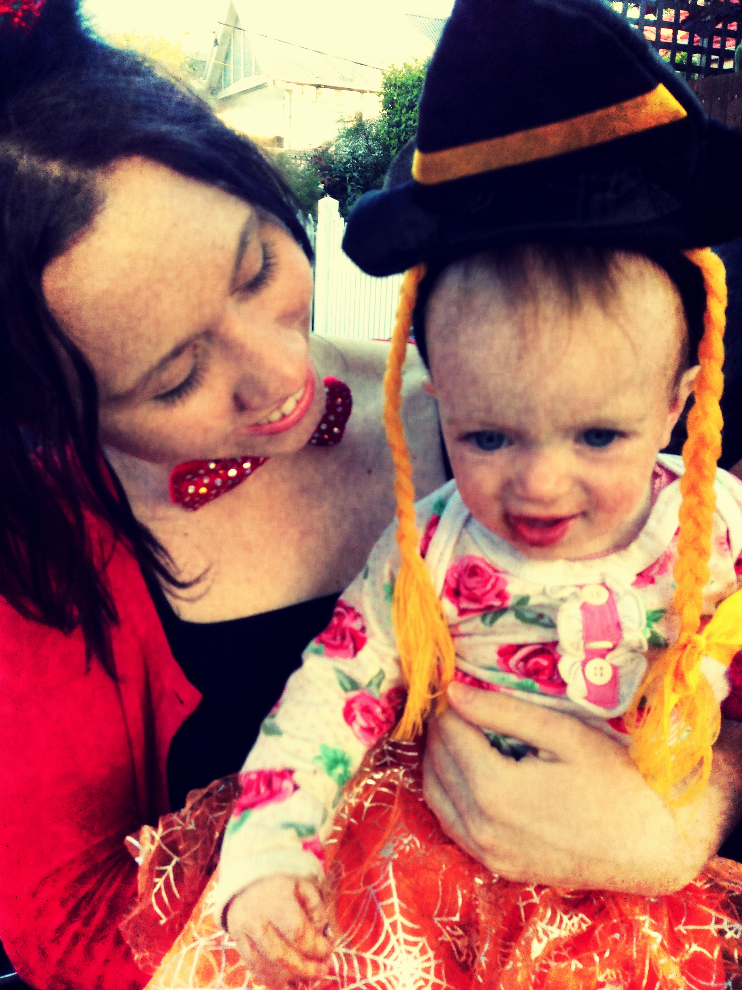 This Day in October, Boo plays with a wooden train set from IKEA, Ruby Red Baby Shoes OP SHOP find, we eat KOJA fruit and nut and seed mix, Aqua baby mittens found at CAMBERWELL MARKET, SKYE and GEORGIE GIRL having an afternoon sleep, MAMMA wears new glasses, my DEMI and her BOO share a moment, Boo wears pre loved GUMB BOOTS and WOOL JUMPER, our front door painted in DULAX SIGNAL RED.