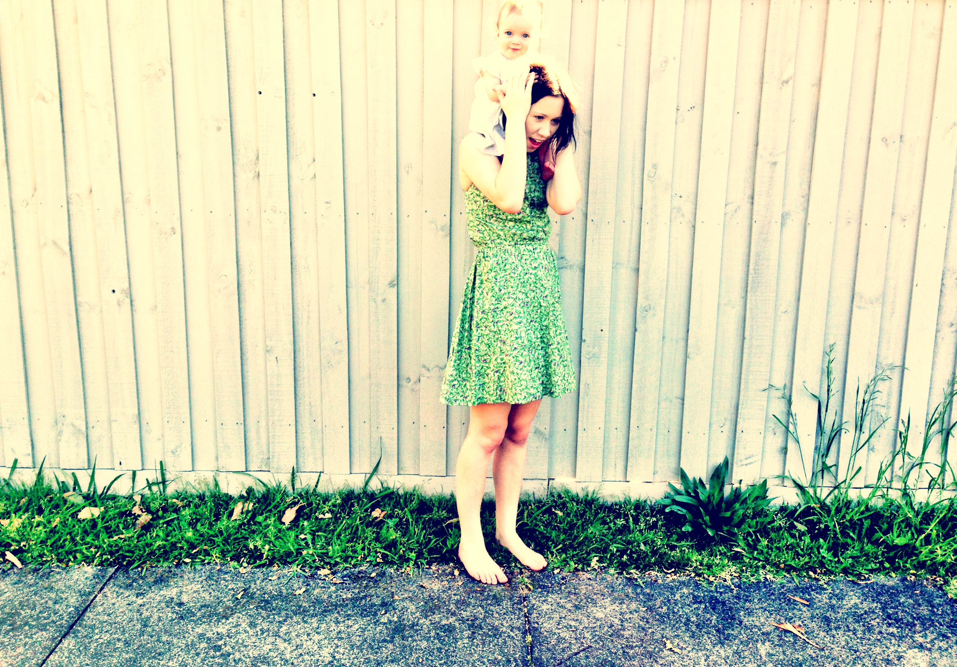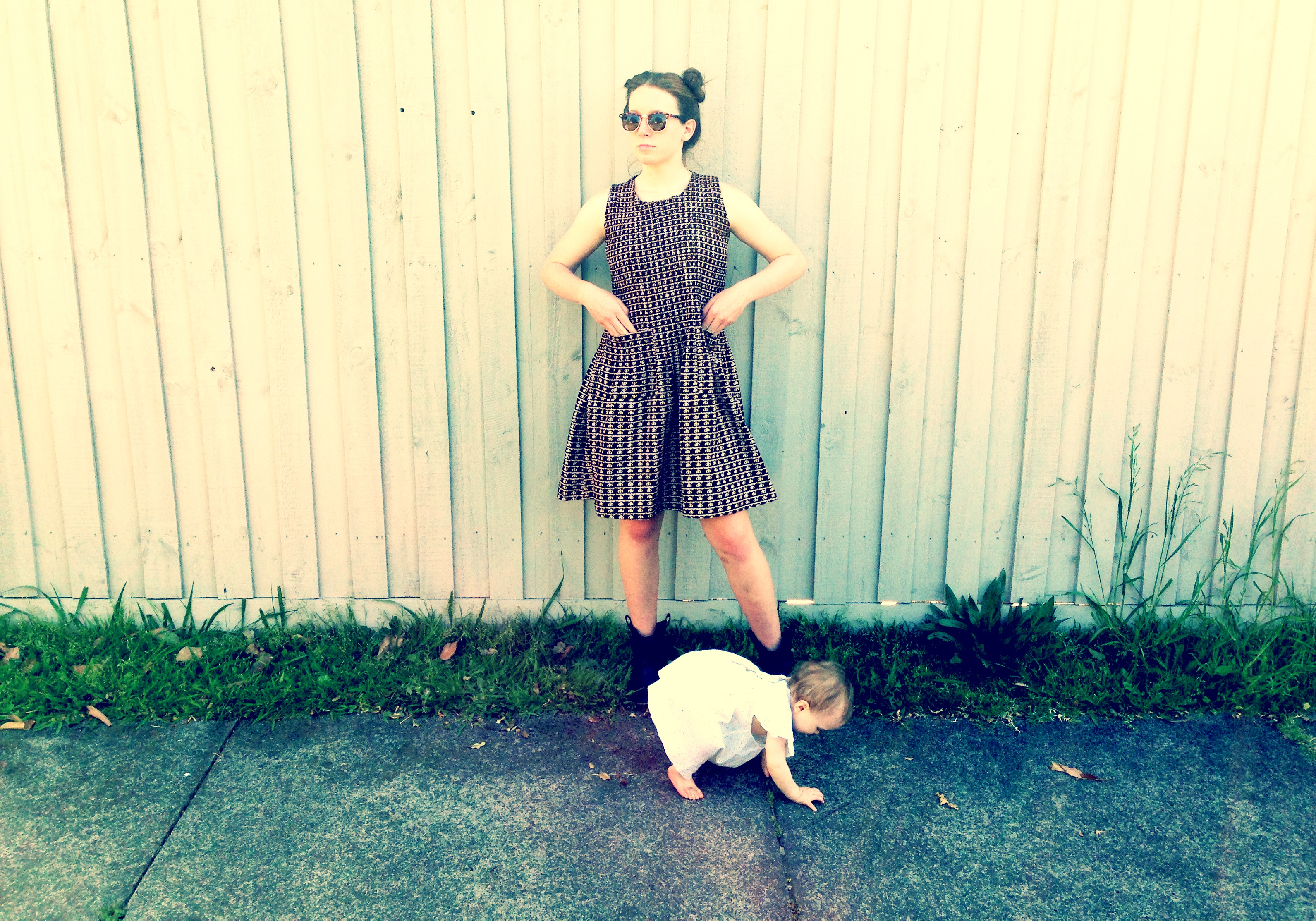 MELBOURNE CITY HATTERS 211 Flinders Street Melbourne,GEORGIE GIRL wears preloved vintage blue baby doll dress, Pappa wears vintage sunglasses from RETRO STAR 1st Floor, Nicholas building/37 Swanston St Melbourne, HUNTER GATHERER Shop 51 Royal Arcade, Melbourne, Baby sling from NUTURE SLING ebay, Mamma’s hat OP SHOP find