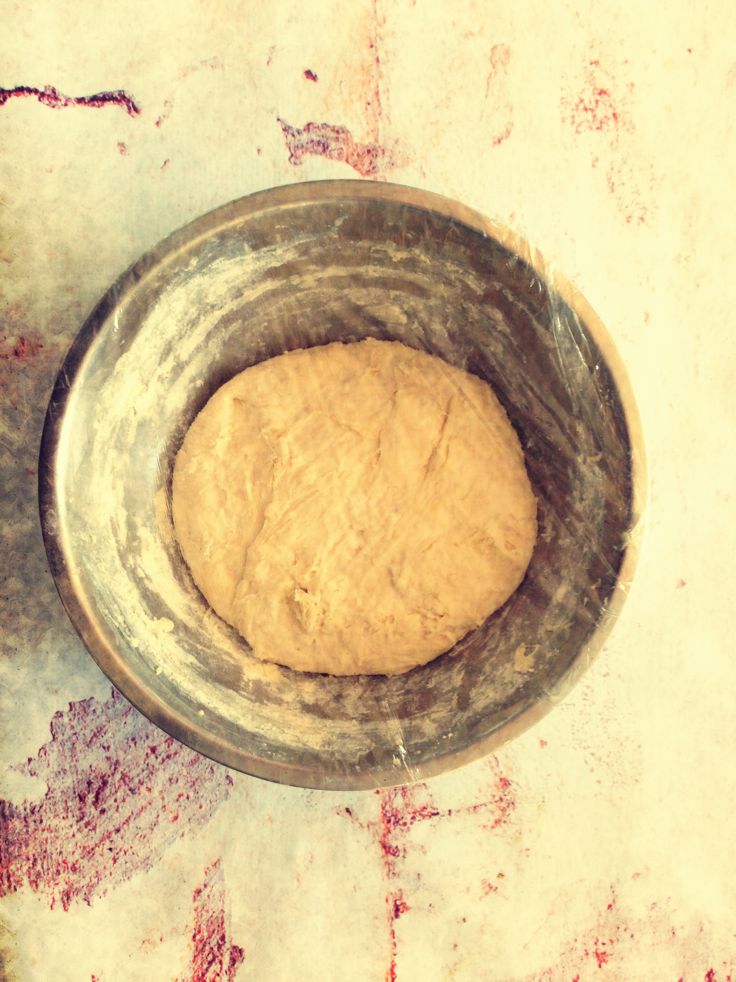 3 cups bread flour, 7grams yeast,2 cups warm water, 1 teaspoon sugar,1 tablespoon olive oil,1 teaspoon salt,cheese for filling,sweet yellow pickles