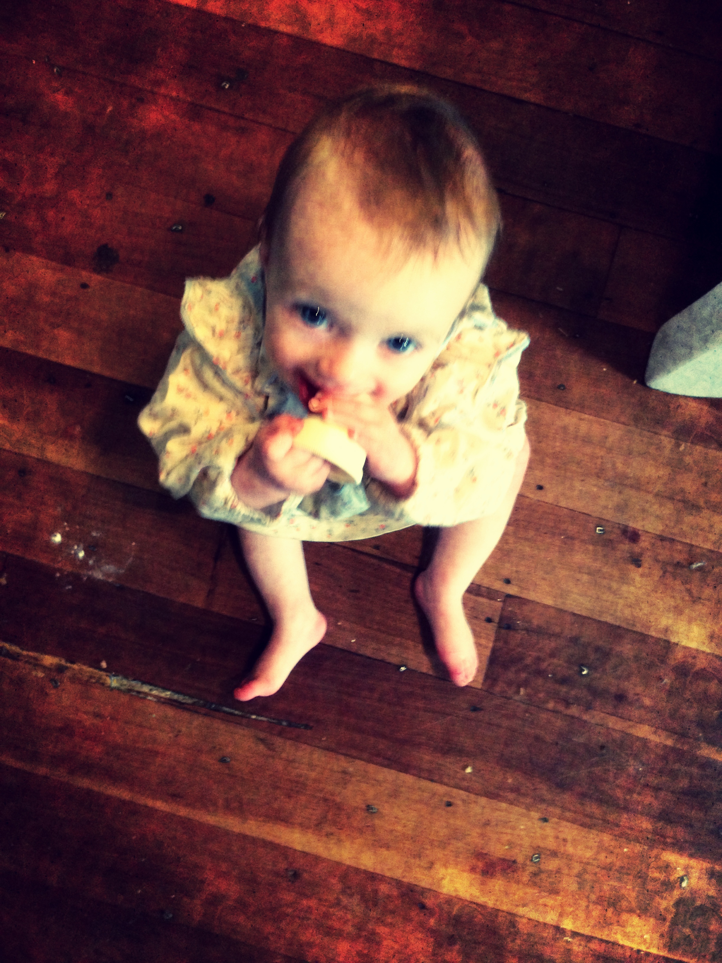 She spends most of her waking hours crawling around the kitchen floor, climbing through the sides of our island bench, pulling herself up on wooden kitchen chairs, clinging to my feet and taste testing anything that falls to the floor. at 8 1/2 months she already knows the sound of the kitchen mixer.. repeatedly says ta when she’s hungry and recognises the blue spatulas as very tasty when covered in cake mix.. little does she know this is the beginning of her kitchen stories.