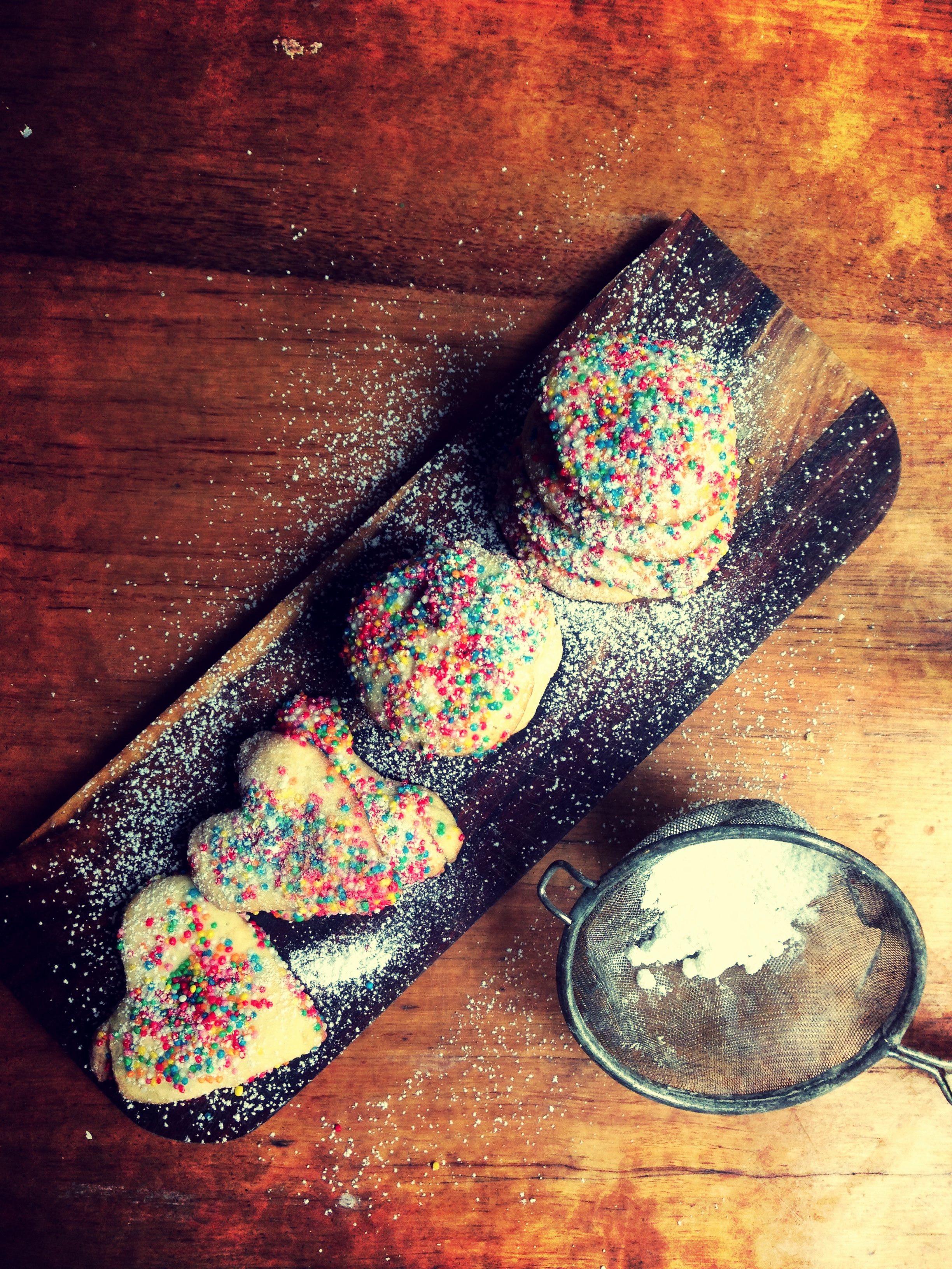 ingredients:125g softened butter,100g caster sugar,1 free-range egg,200 g plain flour,1tsp vanilla extract,1/4tsp baking powder,sprinkles,extra flour for dusting