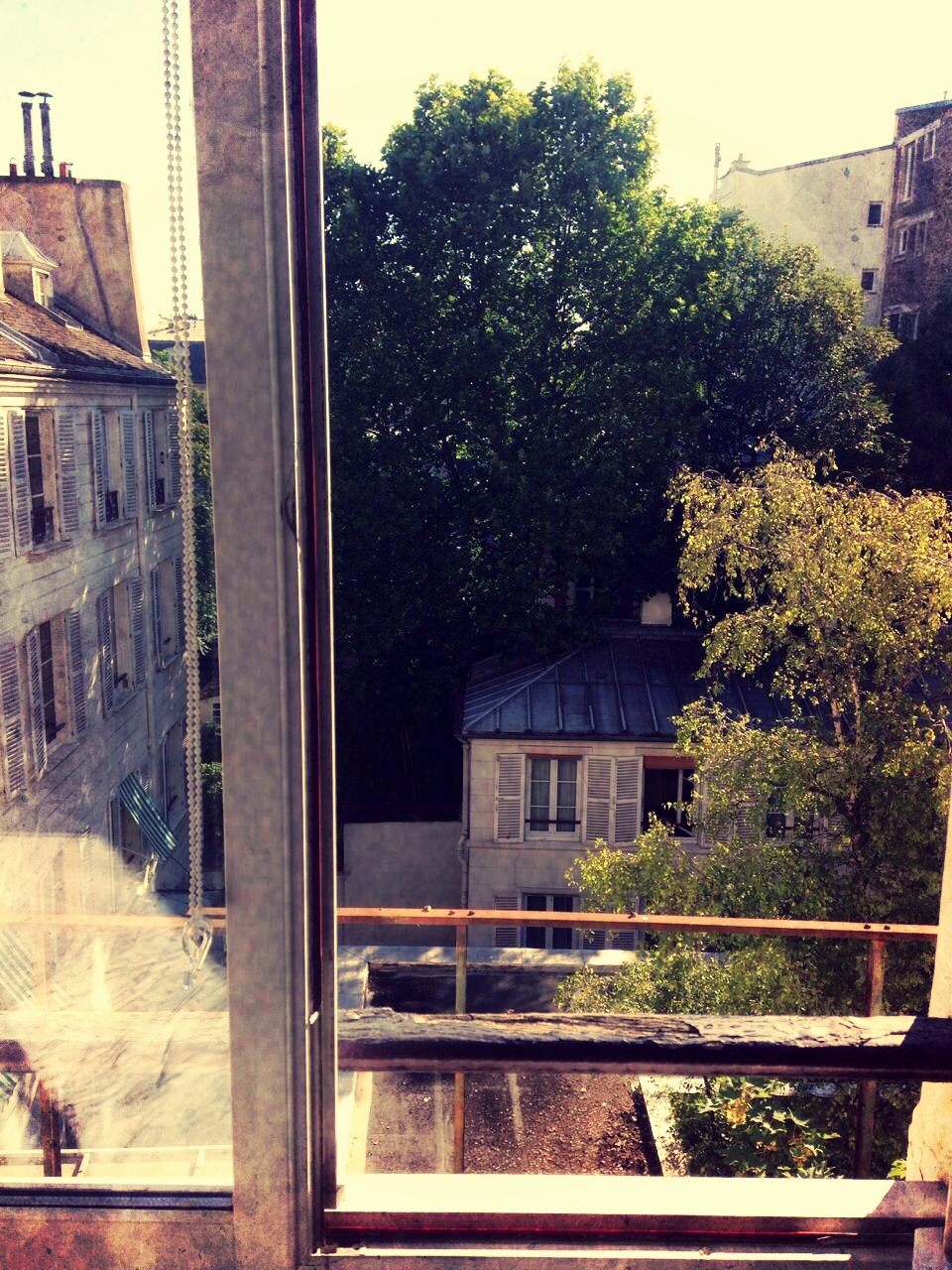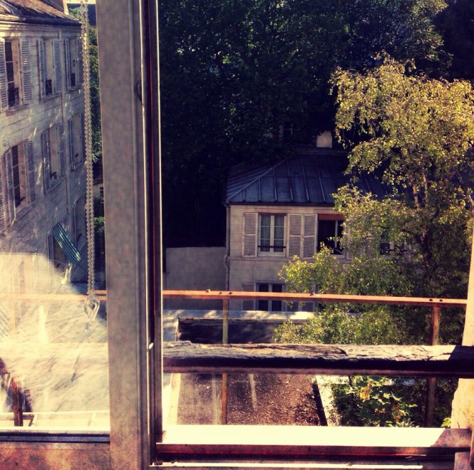 IMG_2632“I spotted a hut in the middle of a field, near the Château de Rosay, its windows glinting in the sun, and the word café painted in giant letters on the roof. I went in for a drink, and asked the proprietor if he had rooms to let . He offered me a little cottage some fifty yards off, with a thatched roof on which iris was in bloom. The following week I spent five days there. There were red tiles on the floor of my room, and i slept in a farmhouse bed under a plumped-out blue eiderdown: at five in the morning I awoke to the sound of cocks crowing. Eyes still shut, I let myself drift between sleeping and waking, between mornings long past and the light now welling up behind my shutters. When i opened the cottage door, there was green grass, and trees all in blossom. I would go and have coffee, and put a table up under an apple tree, and become once more that little girl doing her holiday task under the catalpa tree at Meyrignac. It was to her that i was now offering what, in various forms, she had so often dreamed of: a little house to herself. ”