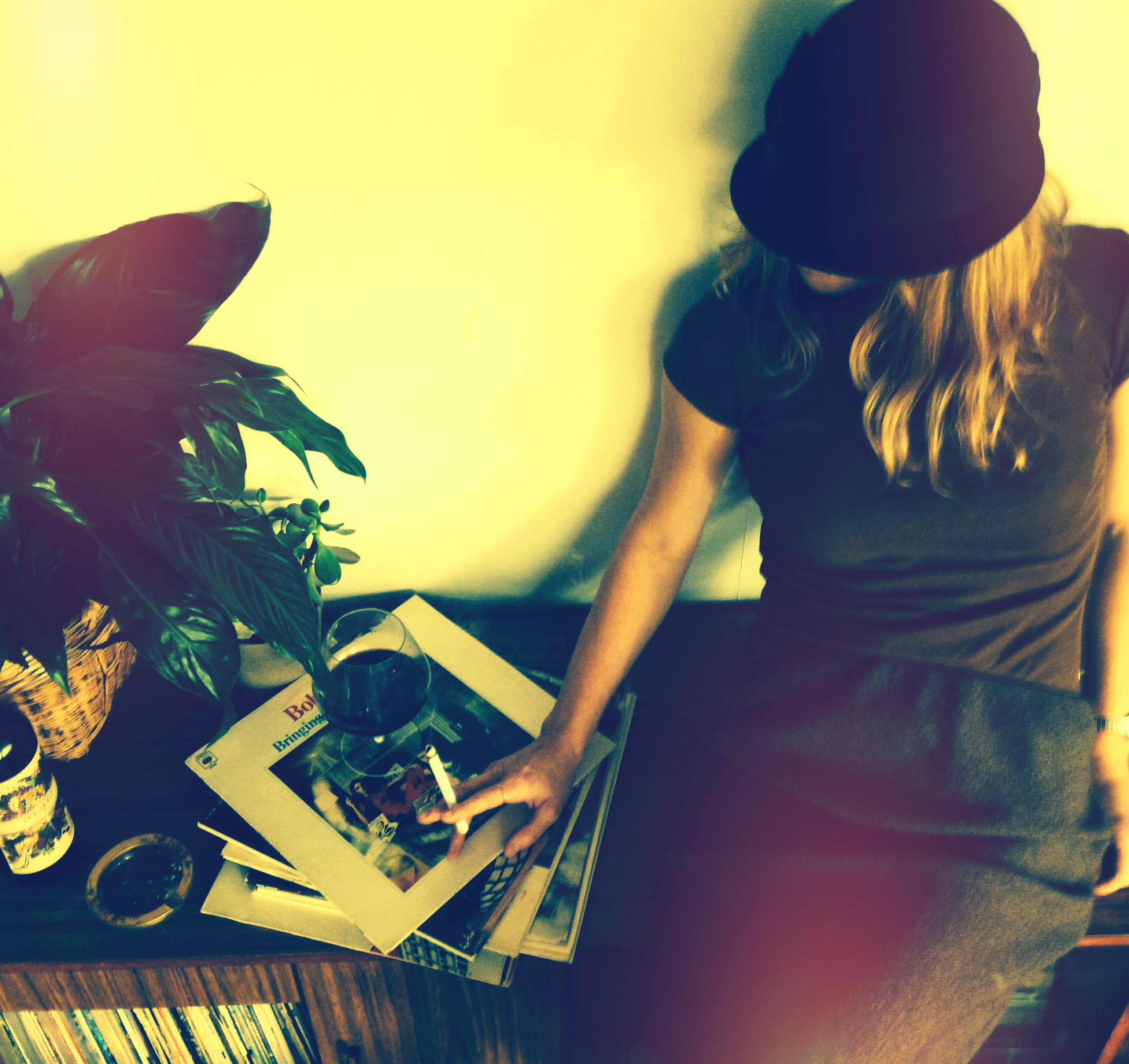 This was a fabulous afternoon spent with Demi. We shipped off the babies to the grandparents for a few hours and set up a photo shoot set in the lounge room for her studio arts assignment. Demi has been blessed with the creative touch, she encompasses an idea and then wistfully creates the picture intended. Here, she is going for retro 1960’S-70’s lounge, setting the scene with the usual Dylan, wine and cigarettes.